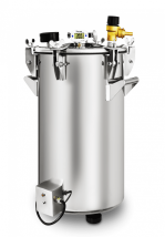 За герметичность автоклава отвечает крышка с силиконовым уплотнительным кольцом, которая надежно крепится на баке с помощью винтовых зажимов. Для правильного использования в конструкцию встроен манометр для отслеживания давления, клапан сброса избыточного давления и гермоввод для электрического термометра.