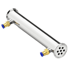 Как работает? Холодная вода поступает непрерывным потоком через нижний патрубок, подключенный к водопроводу. Поднимаясь по цилиндру, она поглощает тепло восходящих спиртовых паров и выводится в верхней части дефлегматора. Регулируя напор воды, вы сможете контролировать температуру при отборе «голов» и «хвостов».