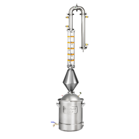 В двухдюймовых холодильнике и дефлегматоре расположено по 9 трубок диаметром 10 мм, данная конструкция позволяет справляться с мощностью нагрева до 6 кВт и разгоняться в режиме Pot-still до скорости 9 литров в час.